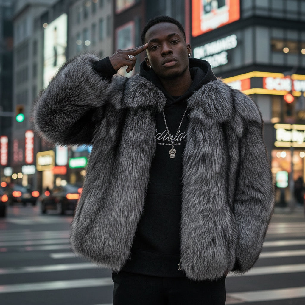 Turn heads without saying a word. The Midnight Monarch Faux Fur Jacket delivers bold luxury with a street-edge attitude. Crafted with ultra-plush faux fur in a deep charcoal-black blend, this statement piece brings warmth, confidence, and undeniable presence. Designed for layering over hoodies or sleek fits, it’s the perfect balance of urban royalty and modern drip—made for those who move like they own the room.