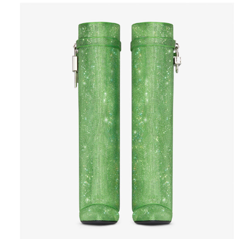 Turn heads with the Round Toe Wedge High Heel Knee-High Boots. These stunning boots feature a bold round toe and super high wedge heel, offering both elevated style and comfort. The addition of rhinestone accents on the lock and a unique shark buckle detail gives these boots a touch of glamour and edge. The knee-high design adds a sleek silhouette, perfect for pairing with dresses, skirts, or skinny jeans. These boots are made for the fashion-forward who aren't afraid to make a statement, combining luxury, style, and standout design in one.