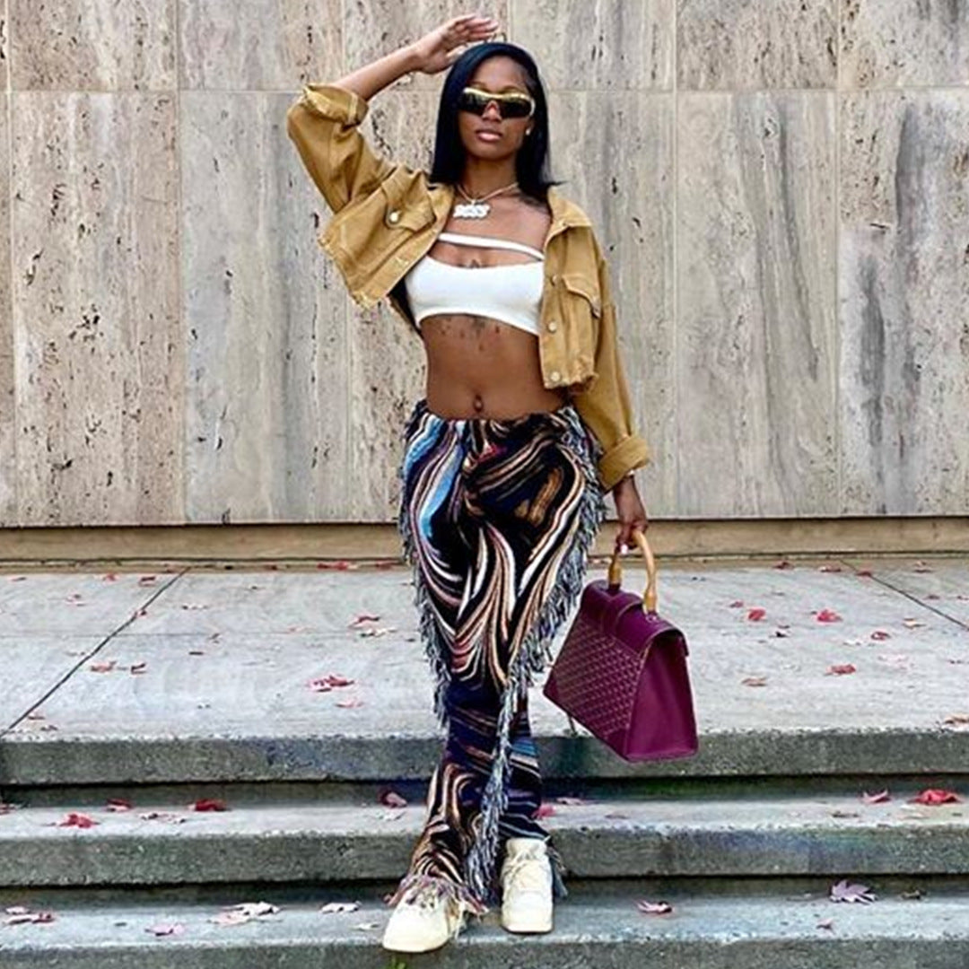 Winter New Casual Fashion Color Fringed Velvet Pants Women